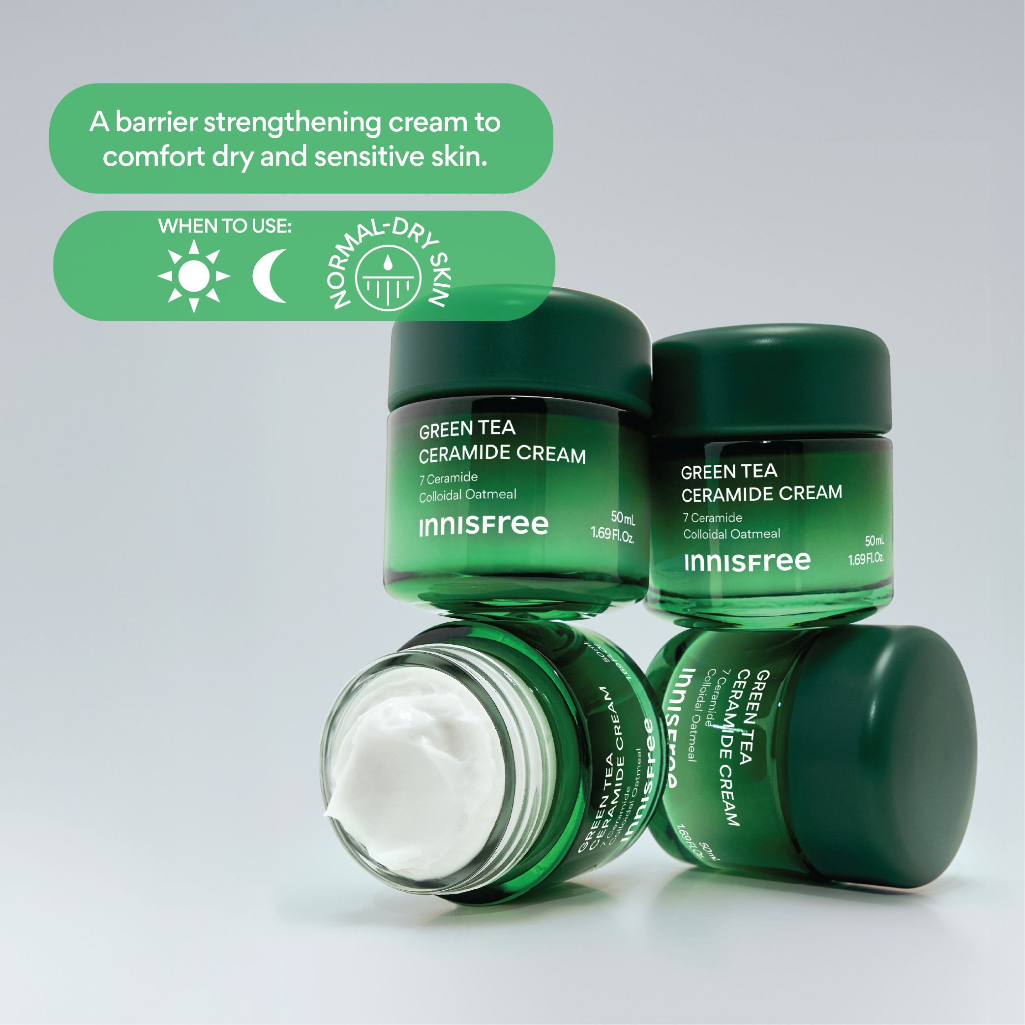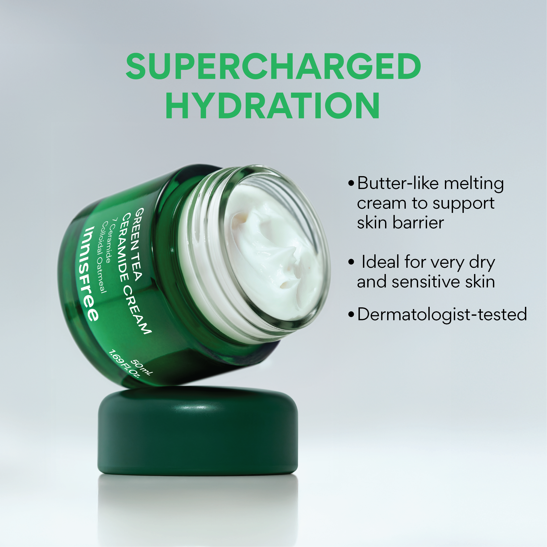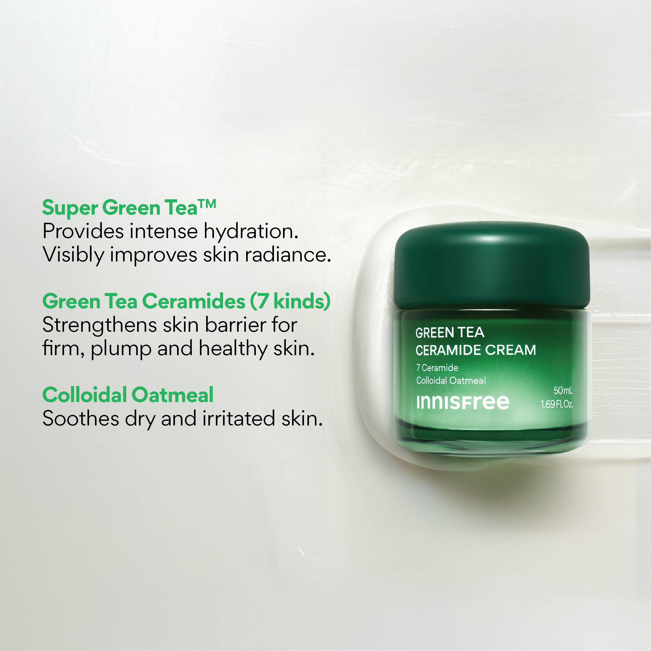 With it's butter-like texture, Green Tea Ceramide Cream melts softly into the skin, absorbing naturally to deliver fresh, yet deeply moisturized skin.
